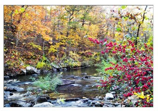 Each day the splendor of his natural surroundings draws Ed Alexander’s attention as he works to capture its beauty on film. From his studio atop Wildcat Mountain, Ed’s photos tell a story of the rugged and sometimes delicate beauty of Arkansas. Images of dramatic vistas and intimate wildlife scenes contrast with photos recording the subtle changes of light and shadow on delicate leaves and flowers that appear in his work.” I, like so many, can easily get caught up in the grandeur of nature: vast sunsets or sweeping views. Often, however, the real beauty is in the smallest detail: a single leaf, water drops on petals. If I can take a picture that captures the joy that nature gives me, and with that image, express it to another, then I have accomplished my goal.”