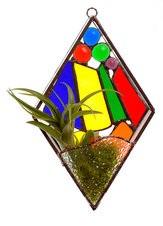Stained glass artist Christy Marchand can’t remember a time when she wasn’t compelled to create. After enjoying a variety of mediums over the years, she found her passion in stained glass. She is most inspired by whimsy and humor and likes to create playful art and gift items for the home and garden for every budget. Primarily using the copper foil technique, she creates traditional zinc framed panels as well as free form pieces. Glass provides an abundance of color, and the variety in the texture of glass provides a wealth of choice, and as if that isn’t enough for fun, Christy often embellishes her work with various mixed media components, including copper wire, silver plate, vintage china, beads, gems, bevels and decorative soldering. After raising a family and retiring from a career in state government in her hometown of Baton Rouge, Louisiana, she and her husband relocated to the wooded foothills of northern Arkansas in 2010. When she’s not in her studio, Christy and her husband, the Vice President of Logistics and Quality Control, and their two dogs are on the road, participating in art festivals around the South and Midwest, including EPCOT’s Flower and Garden Festival.